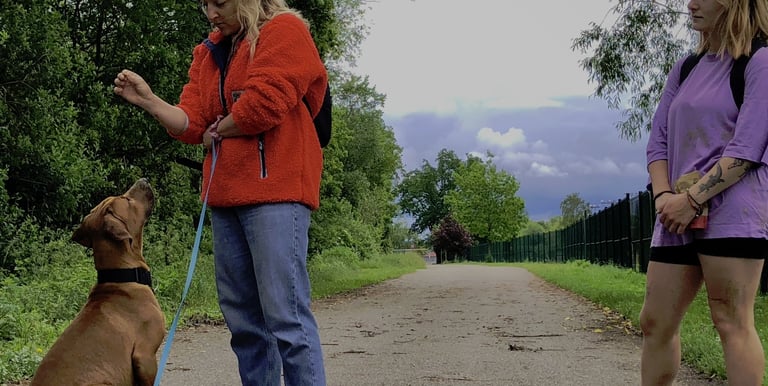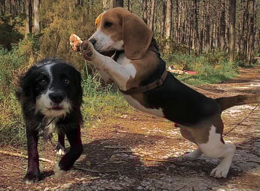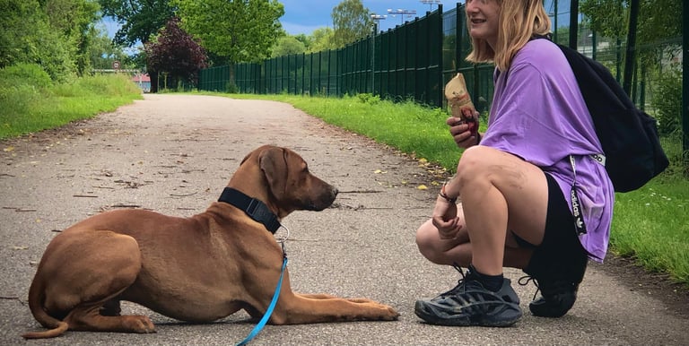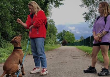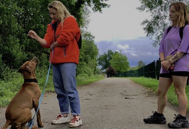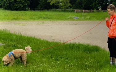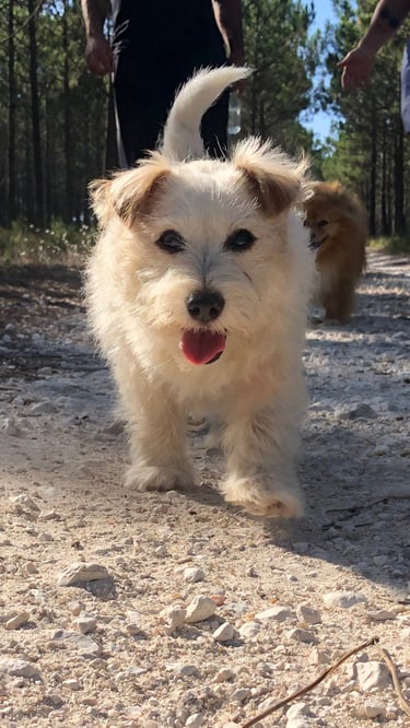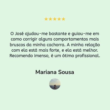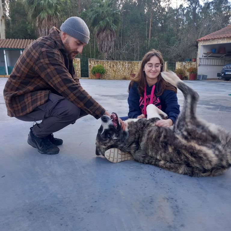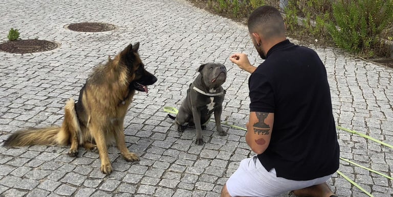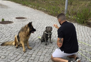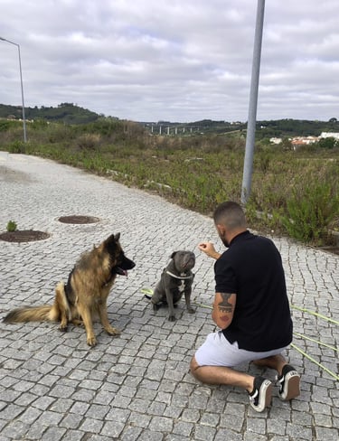 Sessões adaptadas a todos os cães, do cachorro ao sénior, focadas na obediência básica, chamada, passeio com trela e controlo das emoções.