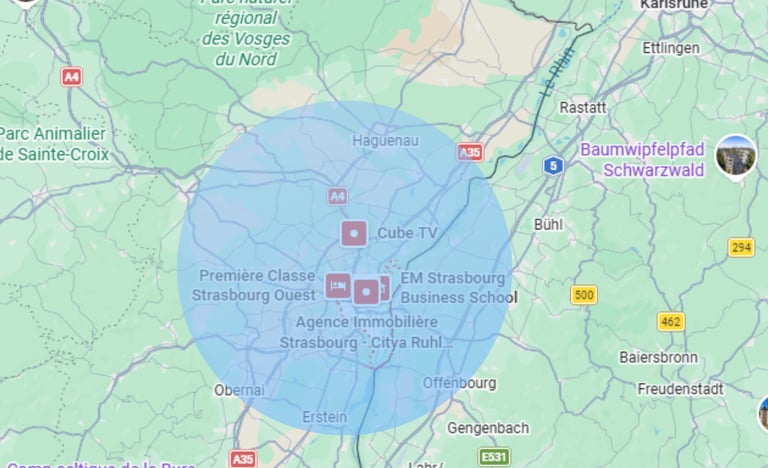 On intervient dans un rayon de 30km autour de Strasbourg :