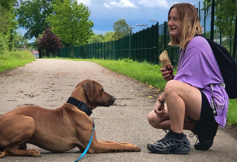 Sessões adaptadas a todos os cães, do cachorro ao sénior, focadas na obediência básica, chamada, passeio com trela e controlo das emoções.